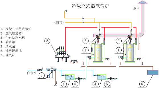 安装简便: 在较大的槽钢底座上集成了锅炉本体、冷凝节能器、给水泵、控制柜等,仅需连接进水管、出汽管、电源线,锅炉就可调投用,便捷。